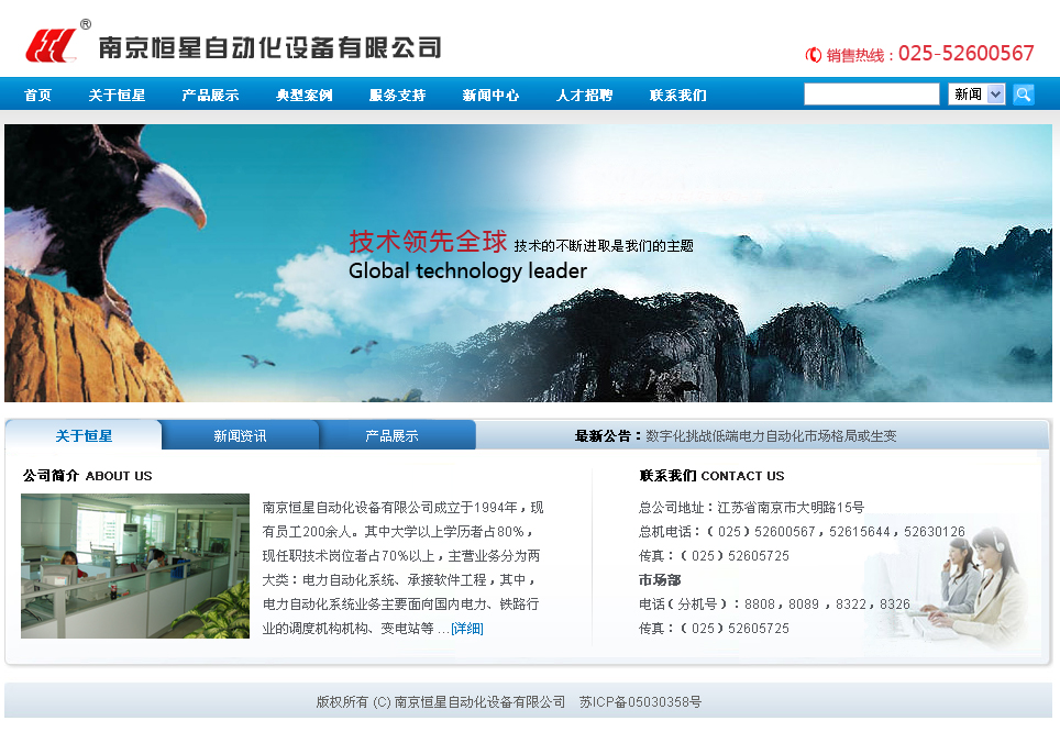 南京恒星自动化设备有限公司成立于1994年,主营自动化控制领域的行业应用和信息服务,是江苏省高新技术开发企业,南京市骨干软件企业。公司总部位于南京市大明路15号,有研发场所、生产厂房6000余平米;并在成都、武汉、西宁、沈阳和乌鲁木齐设有分支机构。