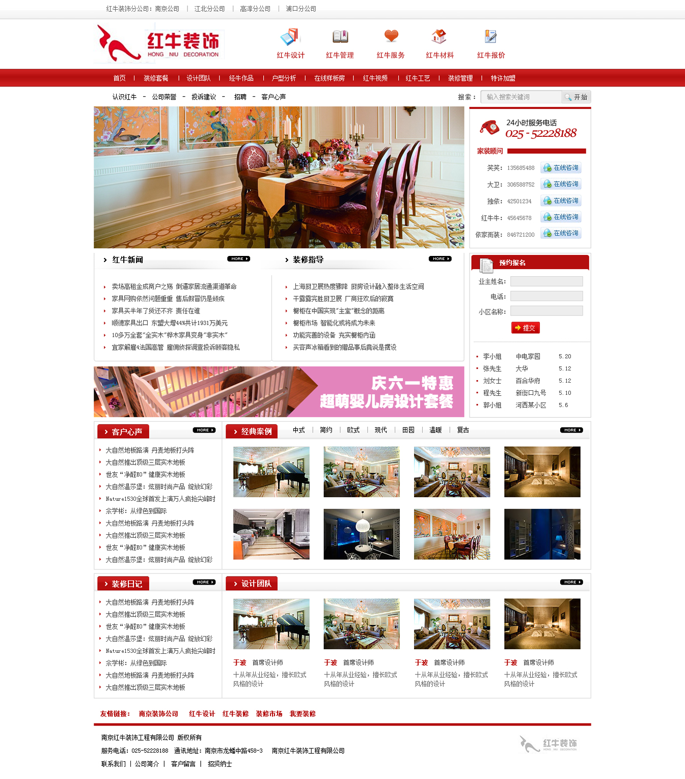 红牛装饰在江苏省范围内设立南京总公司和三家全资分公司,并与合作商共同组建了家居厂、门厂,同时与众多著名品牌材料商组成了战略联盟,可向顾客优惠提供各种中高档家具和主材。公司目前拥有专业固定的管理队伍、设计师队伍、工程管理和施工队伍。