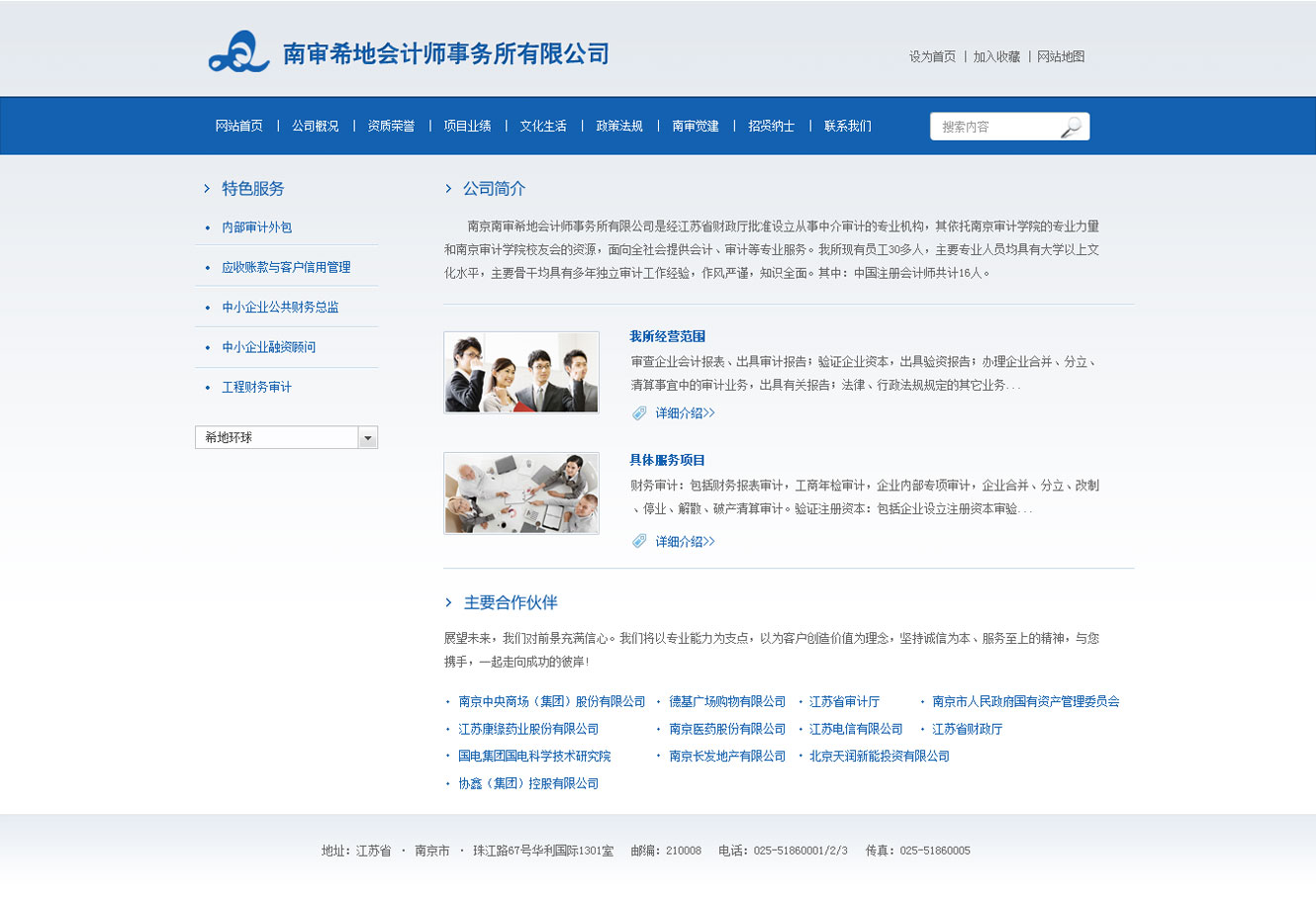南京南审希地会计师事务所有限公司是经江苏省财政厅批准设立从事中介审计的专业机构,其依托南京审计学院的专业力量和南京审计学院校友会的资源,面向全社会提供会计、审计等专业服务。